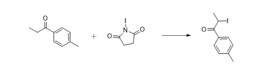 In a dry reaction vessel, add p-methylphenylacetone and N-iodosuccinimide in sequence, mix evenly, and microwave quickly heat to promote the reaction. After the reaction is complete, cool to room temperature, add dichloromethane to the system to extract the product, then wash the organic phase with distilled water, dry it with anhydrous magnesium sulfate, and obtain the product by vacuum distillation and crystallization.